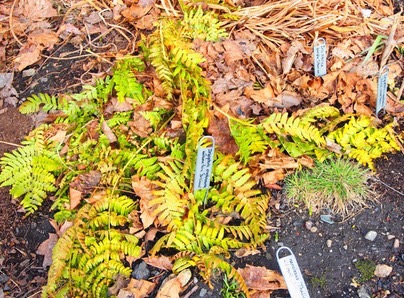 Of course, when we got home I had to go out and take a walk around the back yard, even if it was cold outside. I noted that my fern Dryopteris 'Brilliant' still has some green in it, even at the end of winter.
